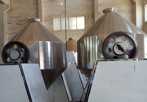 在動(dòng)力驅(qū)動(dòng)下,罐體作緩慢旋轉(zhuǎn),罐內(nèi)物料不斷地混合,從而達(dá)到強(qiáng)化干燥的目的。