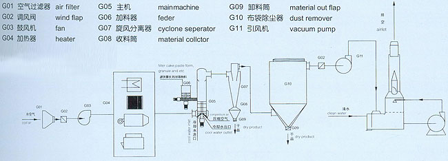 干燥室內周向氣速高,物料停留時間短,有效防止物料粘壁及熱敏性物料變質現象,達到高效、快速、小設備、大生產。